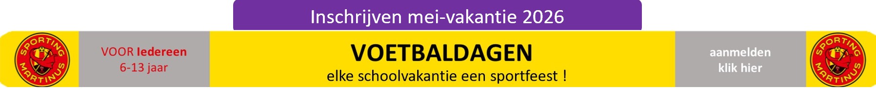 De Voetbaldagen van Sporting Martinus worden elke schoolvakantie georganiseerd, gericht op kinderen van 6-13 jaar met focus op techniek, spelplezier en teamgeest, met variërende programma's en [Lees meer]