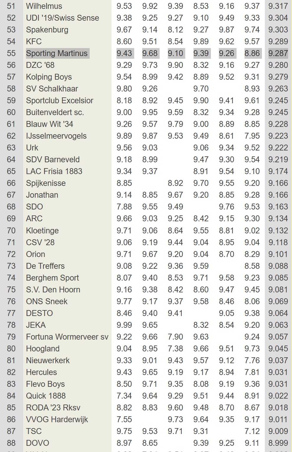 Het is slechts een lijstje, het is een tussenstand halverwege het seizoen en het is een goede vraag hoeveel waarde we kunnen hechten aan deze ranglijst, aangezien de kwaliteit van een jeugdopleiding van heel veel factoren afhankelijk is en niet enkel kan worden afgemeten aan het niveau waarop de selectie-elftallen acteren. Toch is het een interessante jaarlijkse indicatie en is het een graadmeter hoezeer Sporting Martinus op de goede weg is en de vruchten plukt van de jarenlange investeringen in de jeugdopleiding.