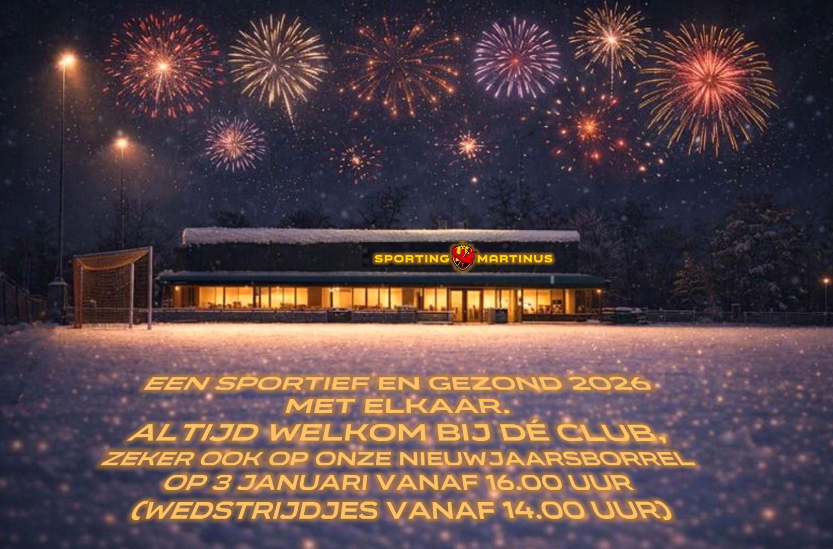Het jaar 2026 willen we goed starten met een gezellige nieuwjaarsborrel op zaterdag 3 januari 2025 vanaf 16.00 uur. Om 14.00 uur starten we met een onderling 7x7 toernooi en met een leuke pot tussen de zondagselectie en de Legends. Altijd gezellig om te zien en mee te maken.